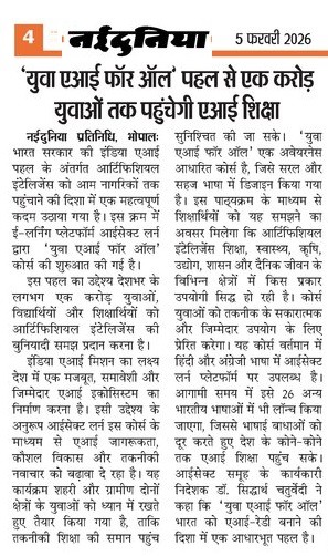 “युवा एआई फॉर ऑल” पहल भारत की एआई-सक्षम और भविष्य-तैयार कार्यबल के निर्माण की दिशा में एक सशक्त कदम मानी जा रही है, जो तकनीकी समावेशन और डिजिटल सशक्तिकरण के राष्ट्रीय लक्ष्य को और मजबूती प्रदान करेगी।