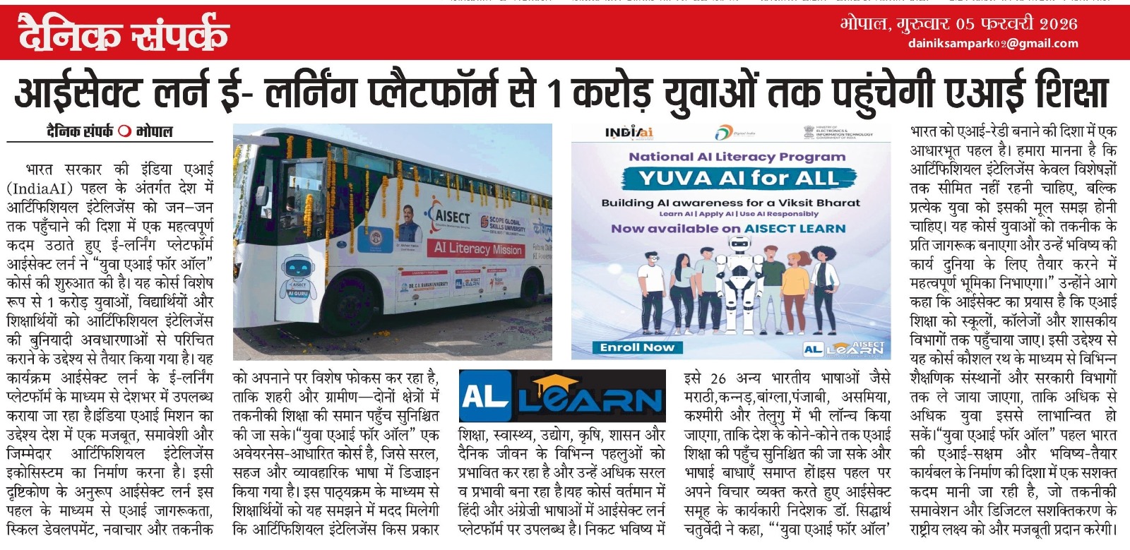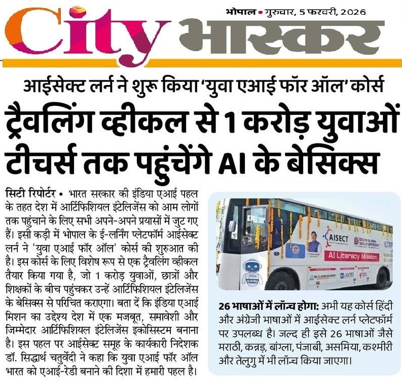 इस पहल पर अपने विचार व्यक्त करते हुए आईसेक्ट समूह के कार्यकारी निदेशक डॉ. सिद्धार्थ चतुर्वेदी ने कहा, “‘युवा एआई फॉर ऑल’ भारत को एआई-रेडी बनाने की दिशा में एक आधारभूत पहल है। हमारा मानना है कि आर्टिफिशियल इंटेलिजेंस केवल विशेषज्ञों तक सीमित नहीं रहनी चाहिए, बल्कि प्रत्येक युवा को इसकी मूल समझ होनी चाहिए। यह कोर्स युवाओं को तकनीक के प्रति जागरूक बनाएगा और उन्हें भविष्य की कार्य दुनिया के लिए तैयार करने में महत्वपूर्ण भूमिका निभाएगा।” उन्होंने आगे कहा कि आईसेक्ट का प्रयास है कि एआई शिक्षा को स्कूलों, कॉलेजों और शासकीय विभागों तक पहुँचाया जाए। इसी उद्देश्य से यह कोर्स कौशल रथ के माध्यम से विभिन्न शैक्षणिक संस्थानों और सरकारी विभागों तक ले जाया जाएगा, ताकि अधिक से अधिक युवा इससे लाभान्वित हो सकें।