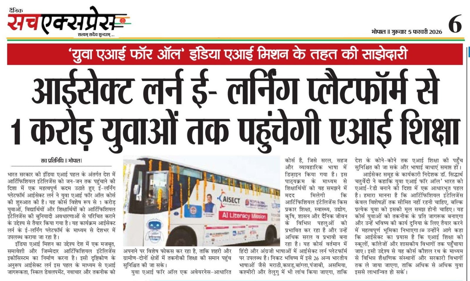 इंडिया एआई मिशन का उद्देश्य देश में एक मजबूत, समावेशी और जिम्मेदार आर्टिफिशियल इंटेलिजेंस इकोसिस्टम का निर्माण करना है। इसी दृष्टिकोण के अनुरूप आईसेक्ट लर्न इस पहल के माध्यम से एआई जागरूकता, स्किल डेवलपमेंट, नवाचार और तकनीक को अपनाने पर विशेष फोकस कर रहा है, ताकि शहरी और ग्रामीण—दोनों क्षेत्रों में तकनीकी शिक्षा की समान पहुँच सुनिश्चित की जा सके।
