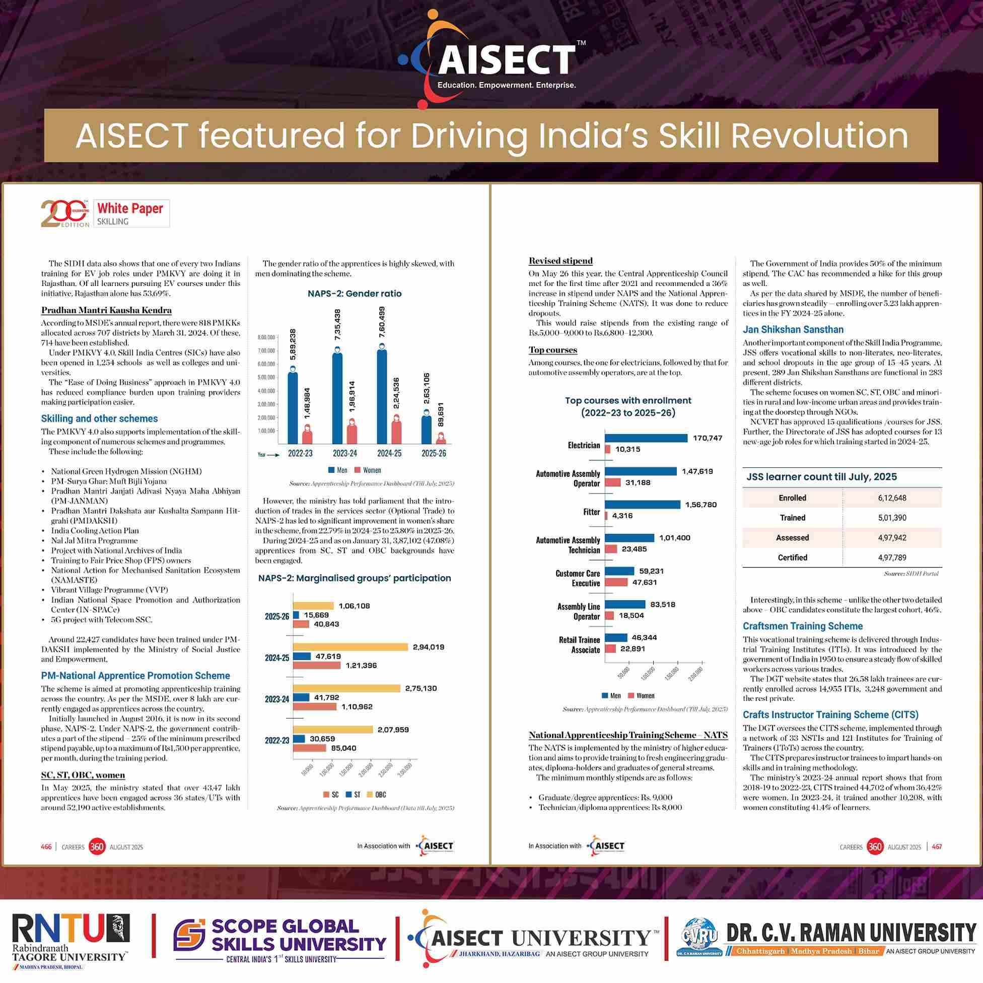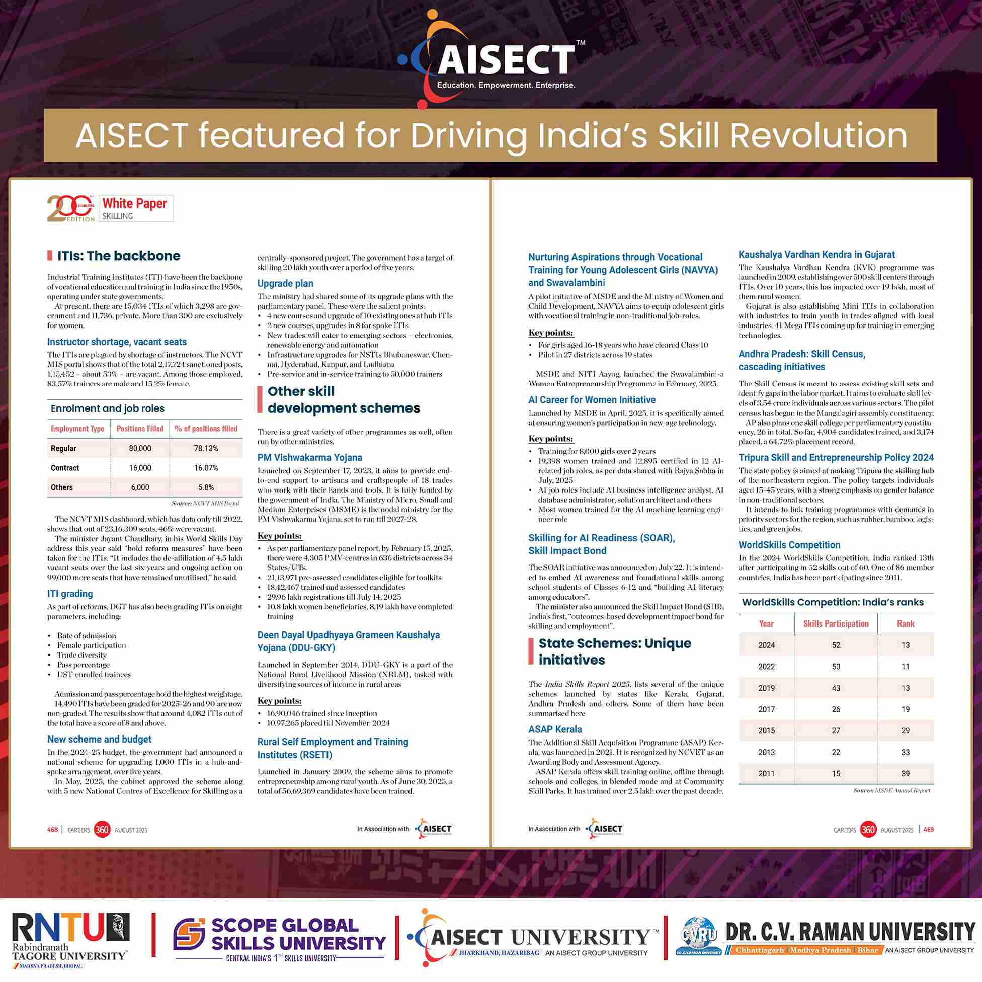 AISECT has been prominently featured in the Careers360 200th Edition, “Tracing India’s learning curve” and the evolving skilling ecosystem shaping the nation’s future workforce.