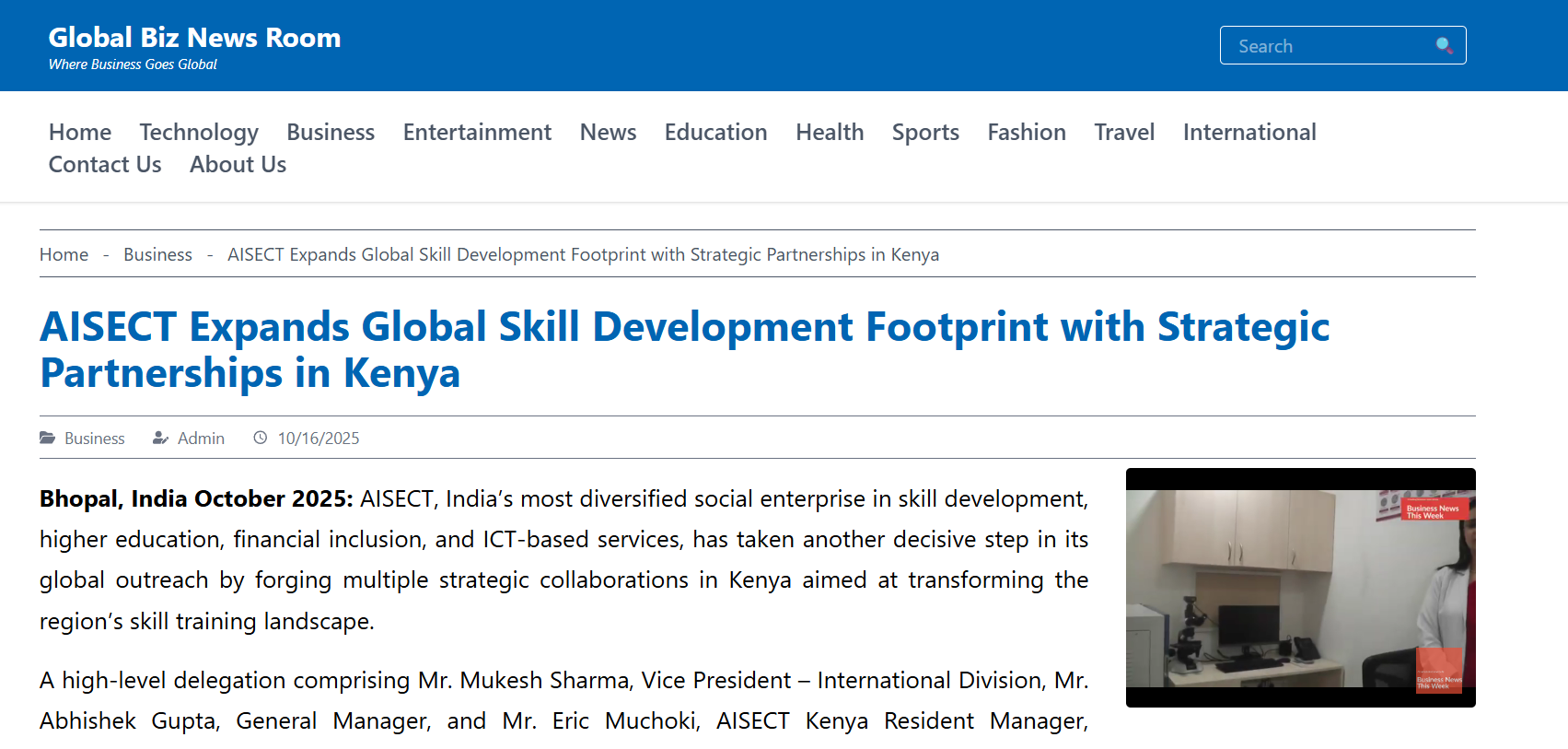 AISECT Expands Global Skill Development Footprint with Strategic Partnerships in KenyaBhopal, India October 2025: AISECT, India’s most diversified social enterprise in skill development, higher education, financial inclusion, and ICT-based...
